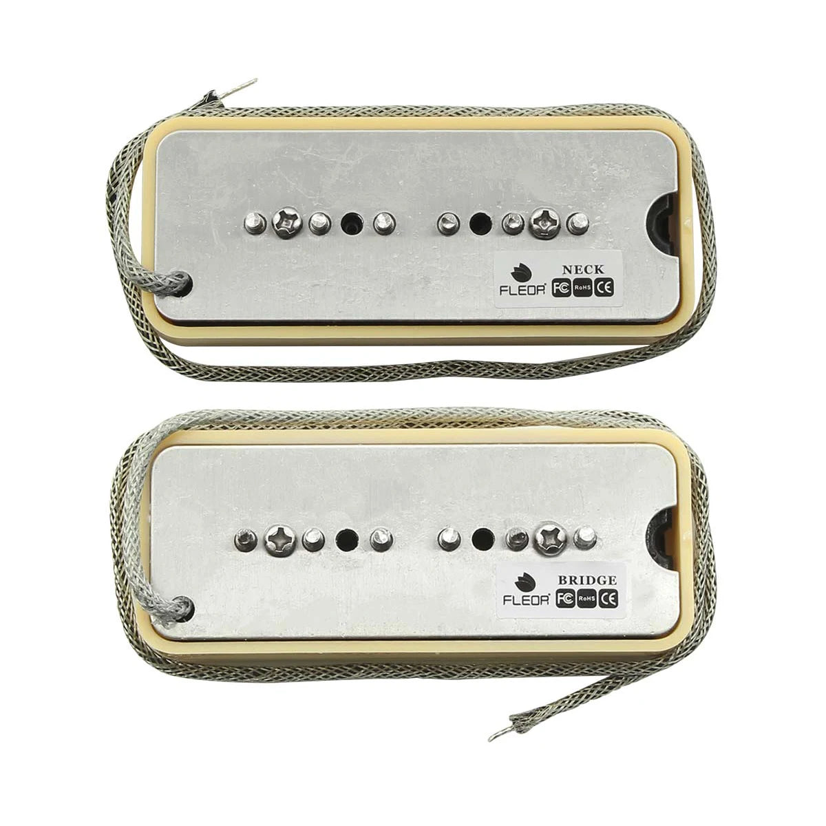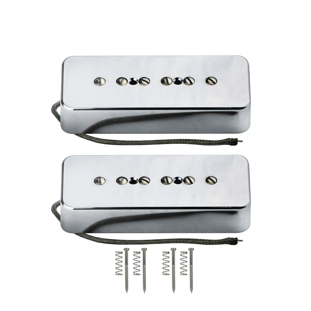 FLEOR Set of Vintage Alnico 5 Soapbar P90 P 90 Pickup Guitar Neck & Bridge Pickups, Chrome/Black/Yellow Option