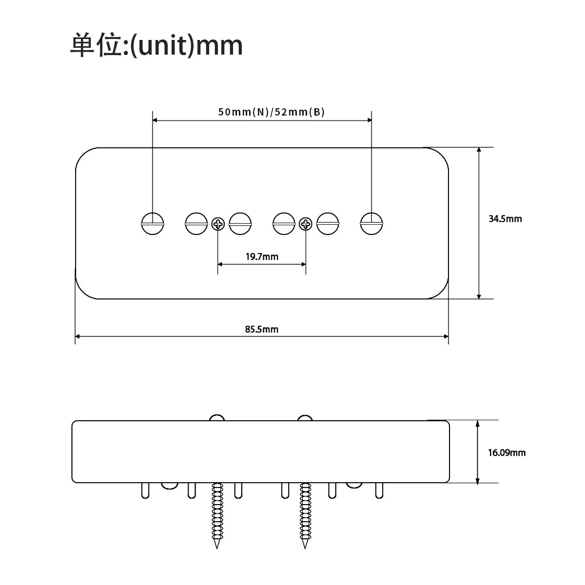🎸Pole Spacing:  Neck 50mm,Bridge 52mm.
