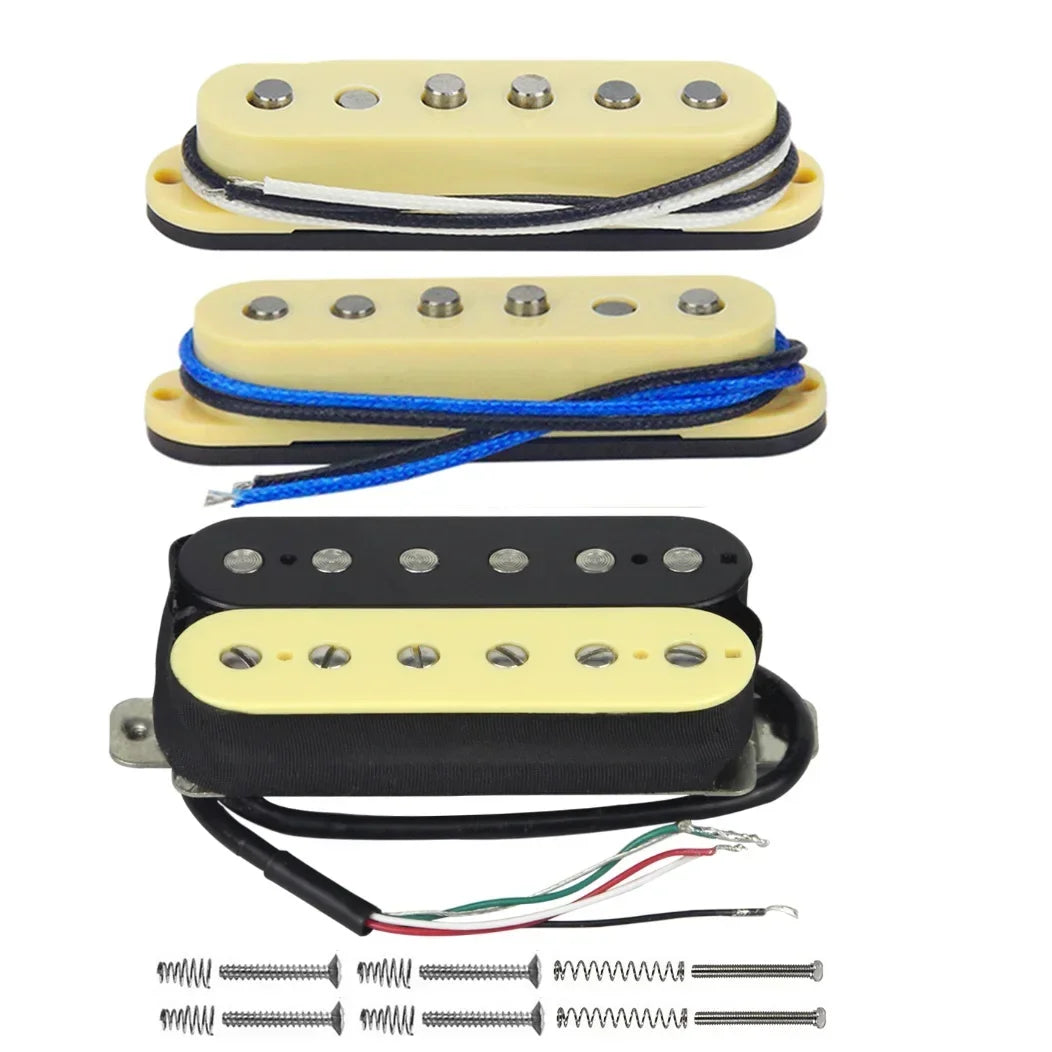 Neck&Middle: Single Coil Pickups , Staggered Pole Pieces, Fiber Plate Bobbin & ABS Cover , Wax Potted Braided Cloth Wirings.