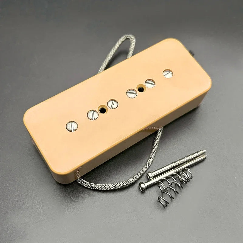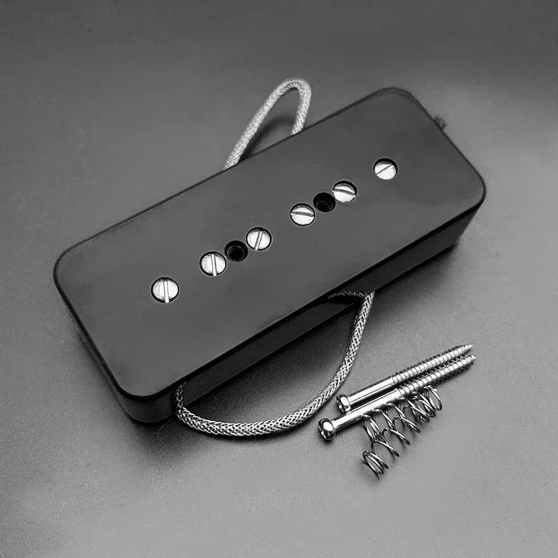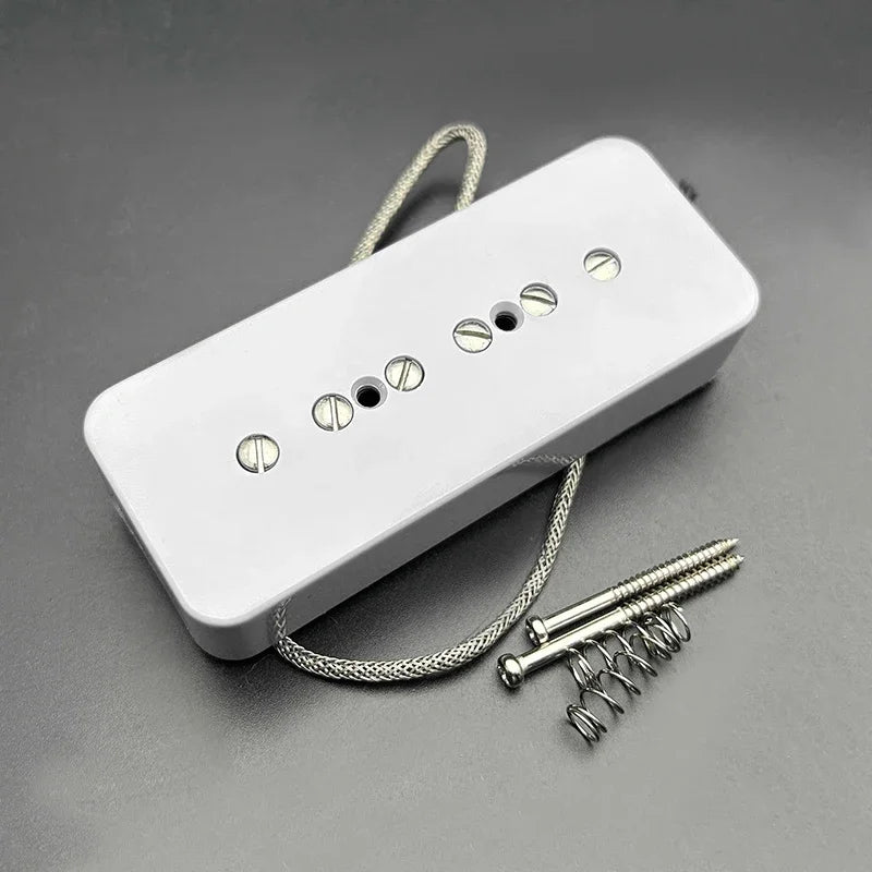Feature: Alnico 2 Soapbar P90 Guitar Pickup 6 Adjustable Pole Pieces Fully wax potted and sealed The thin gauge coil wire creates a clear and bright tone One Pickup Includes 4x screws and springs